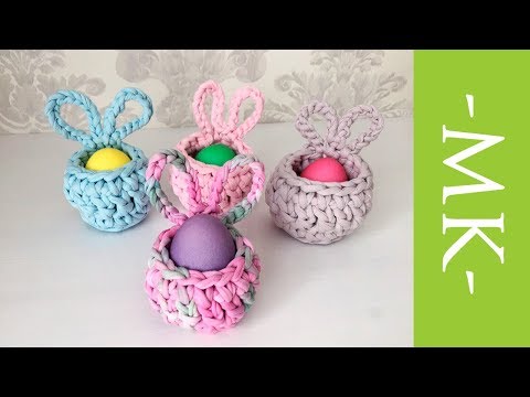 Вяжем красивые корзинки для яиц из трикотажной пряжи с ушками