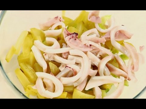 - морепродукт очистить, отварить, охладить, нарезать кольцами