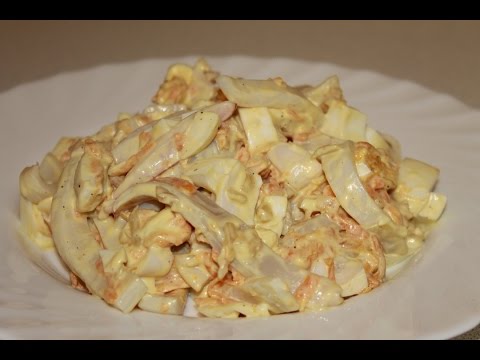 Самый простой салат с кальмарами с яйцом