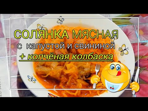 Готовится солянка и с добавлением капусты. Только нужно ее немного, чтобы блюдо не превратилось в банальные щи. Принцип приготовления детально описан в видео.