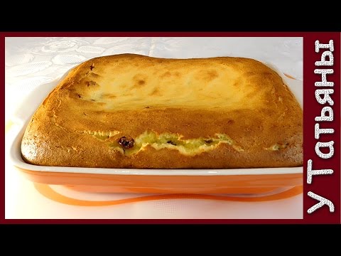 У друзей мы пробовали точно такую же, но хозяйка не использовала изюм. Вместо него она выкладывала на дно посуды консервированный ананас, а сверху выливала тесто и запекала. После выпекания она переворачивала готовую запеканку ананасами кверху.